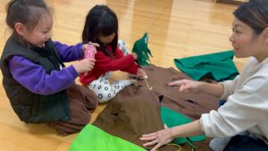 なおこ先生の英語リトミックレッスンです✨ウォーミングアップでは以前行った「スプーン玉運び」を取り入れました。空のお皿には動物カードを置き、「ごはんを届けてね」と声をかけると、子どもたちは意欲的に参加してくれました😊 ひと […]