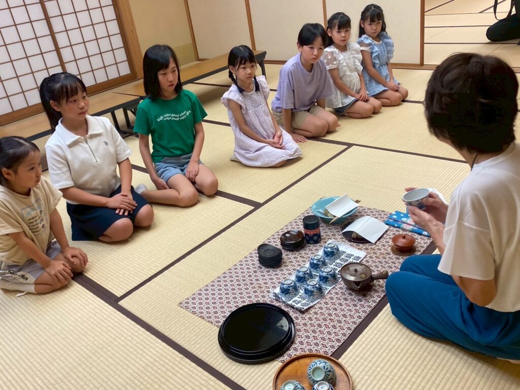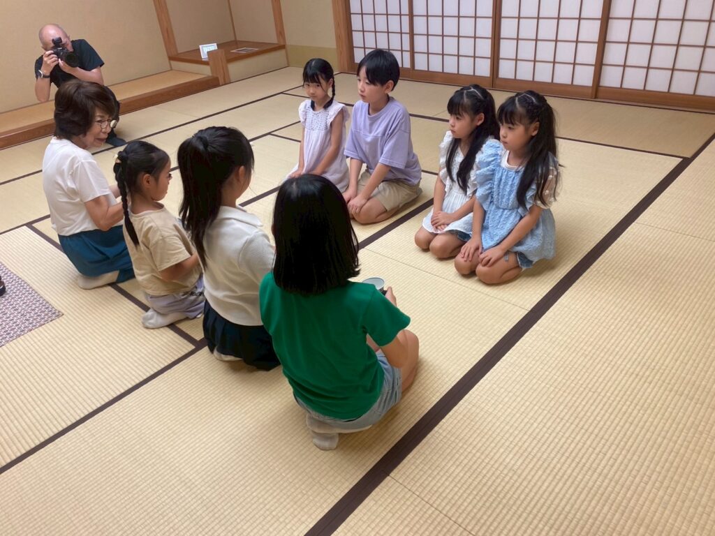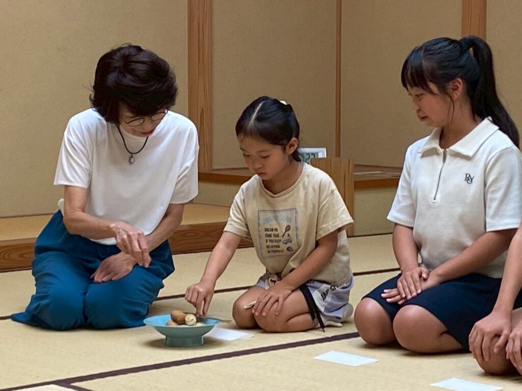 湯呑みや茶托、急須など道具の名前や、畳の縁には座らないといった和室での基本的な過ごし方も学びながら、
