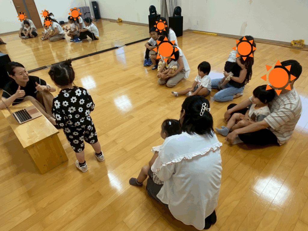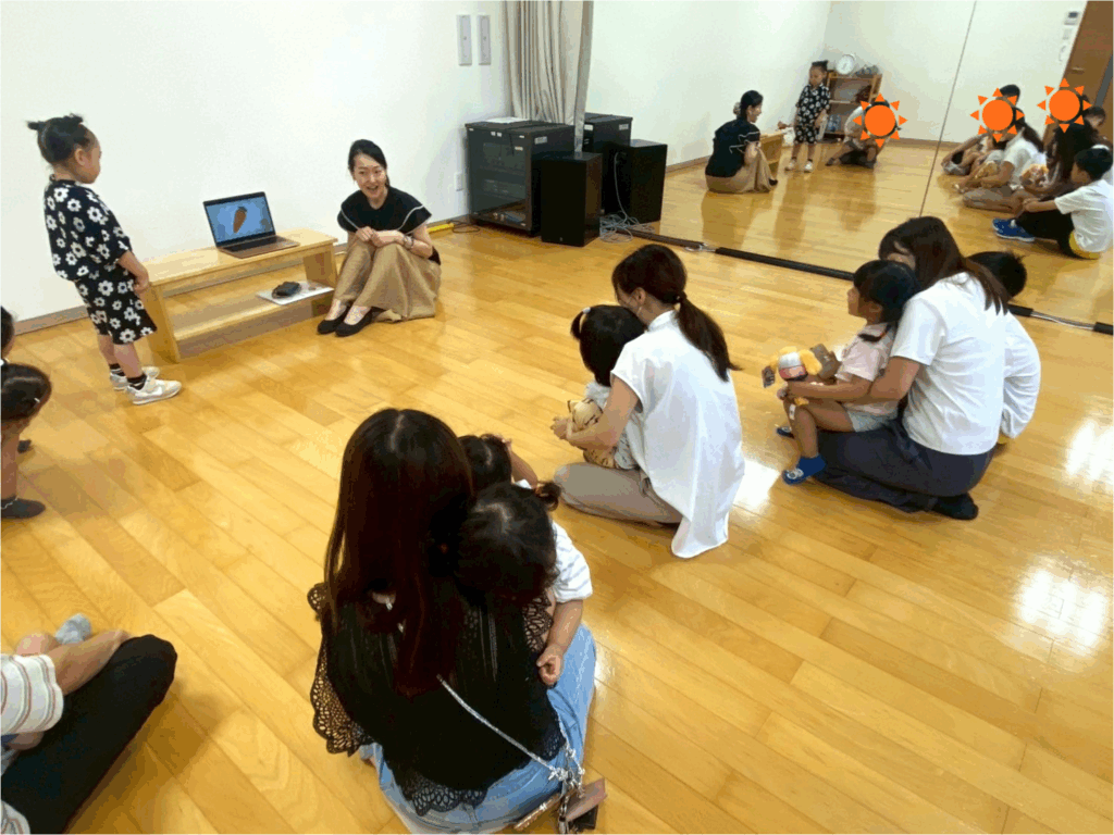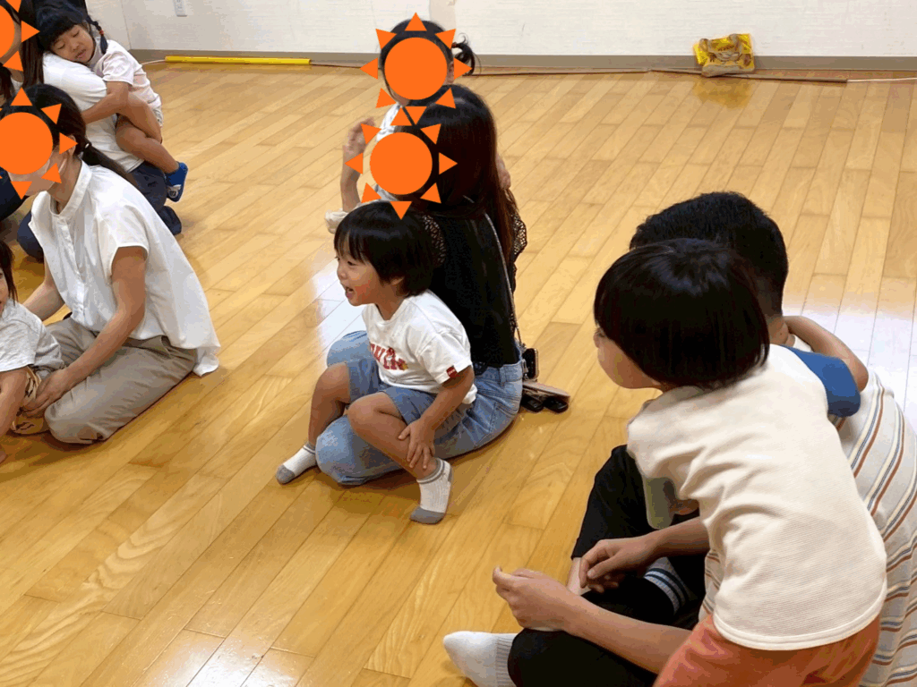 ウォーミングアップでは、「ミックスジュース」の手遊びや、スケッチブックを使った“にらめっこ”で、いろいろな表情を楽しみました😊