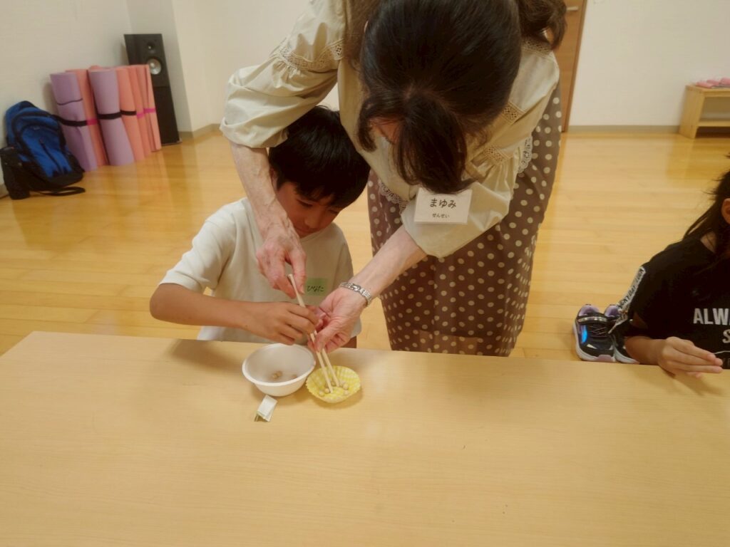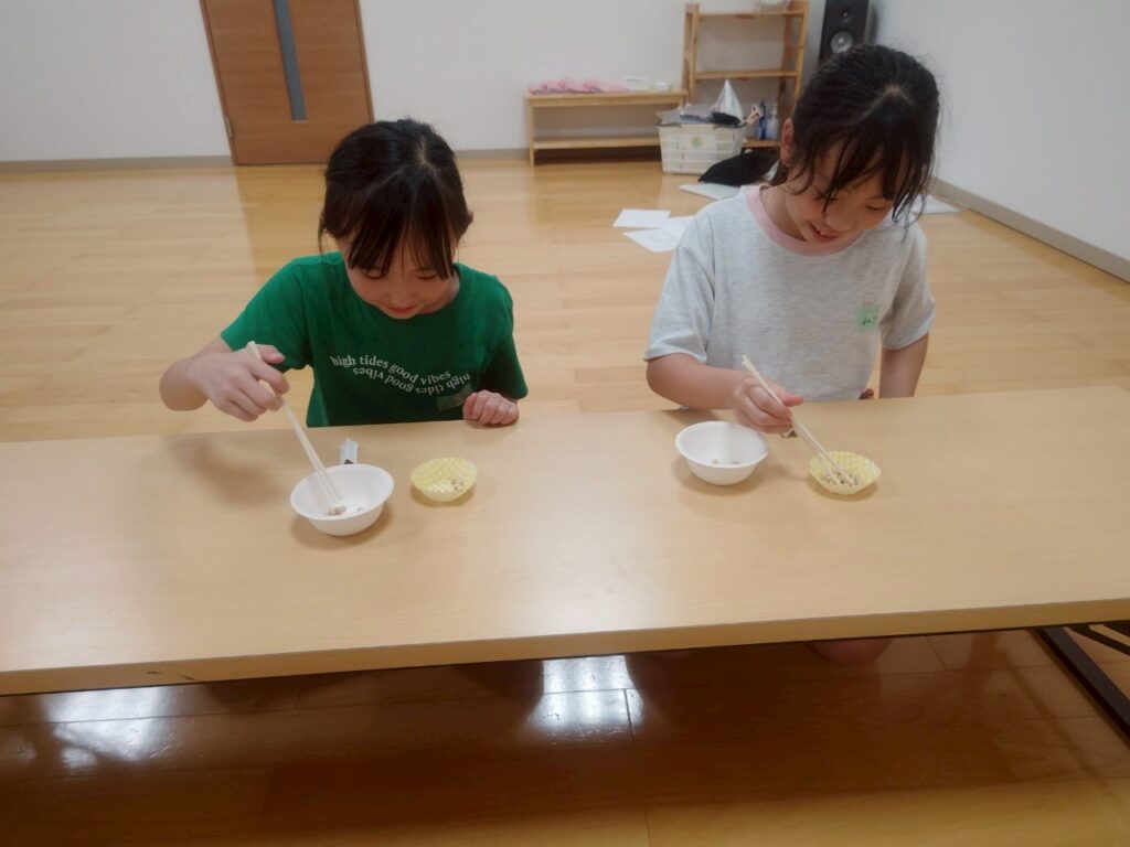 お箸を使い慣れている子たちは、何往復もお豆を移動できていて素晴らしかったです💯