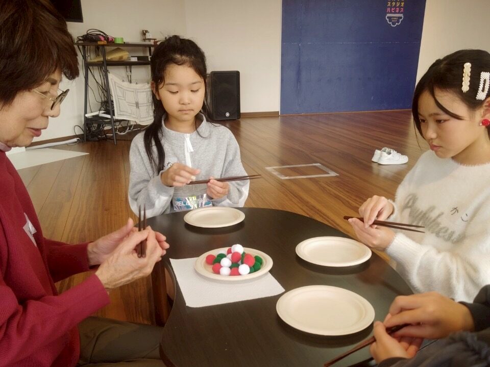続いて、机を用意してお箸と鉛筆の持ち方をレッスン✏️