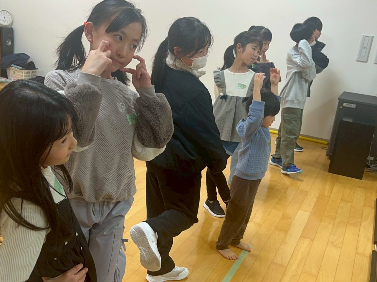 ウォーミングアップを見ていたさちえ先生から「みんなの挨拶、ちょっとお化けみたいにぬるっとしてるなぁ」とお話を頂きました。