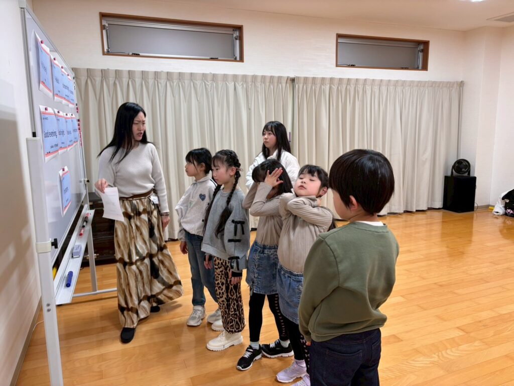 身振り手振りをつけて、大きな声で挨拶言葉を練習する姿がとても印象的なレッスンでした✨